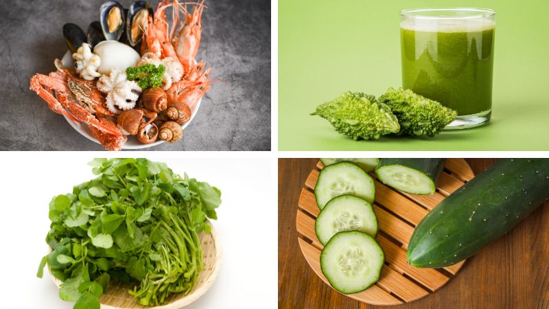 Ví dụ bạn đã ăn nhiều thực phẩm nóng như ớt, hạt điều, thịt chó thì nên cân bằng lại bằng các thực phẩm mát như rau xanh, nước dừa, trái cây có vị chua…